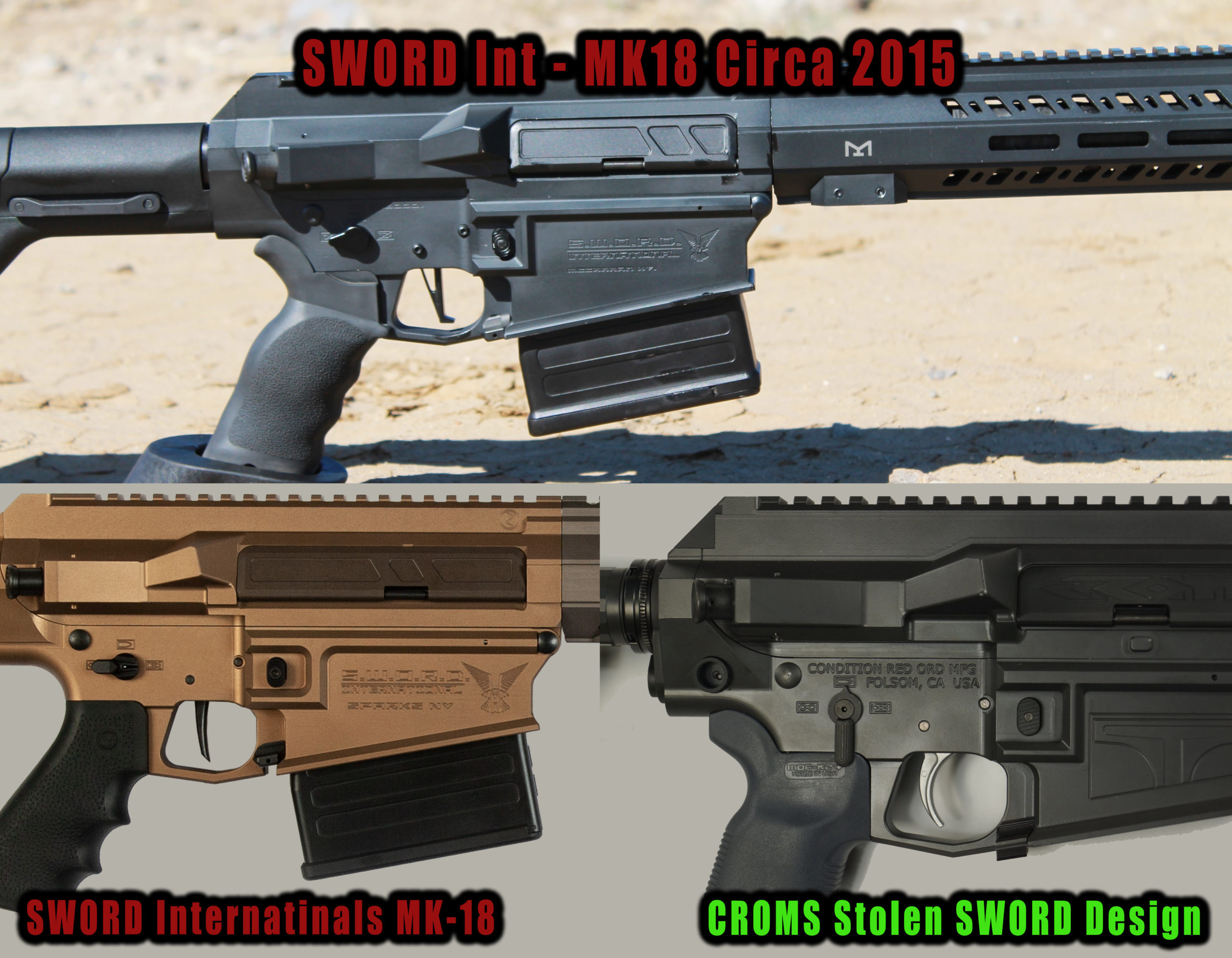CROM began with limited to few ideas on how to make a better firearm, after NO R&D and acquiring patent pending designs and copy written material from a fabrication shop, CROM USA now has a line up of firearms with poached designs.